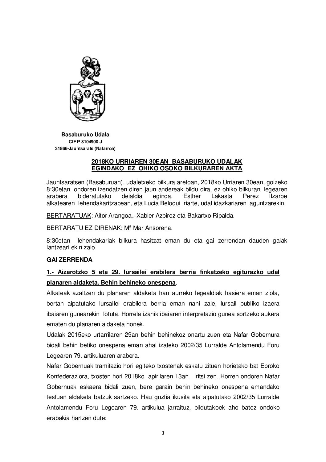 2018-10-30 Ez Ohiko Udal Batzarreko Akta