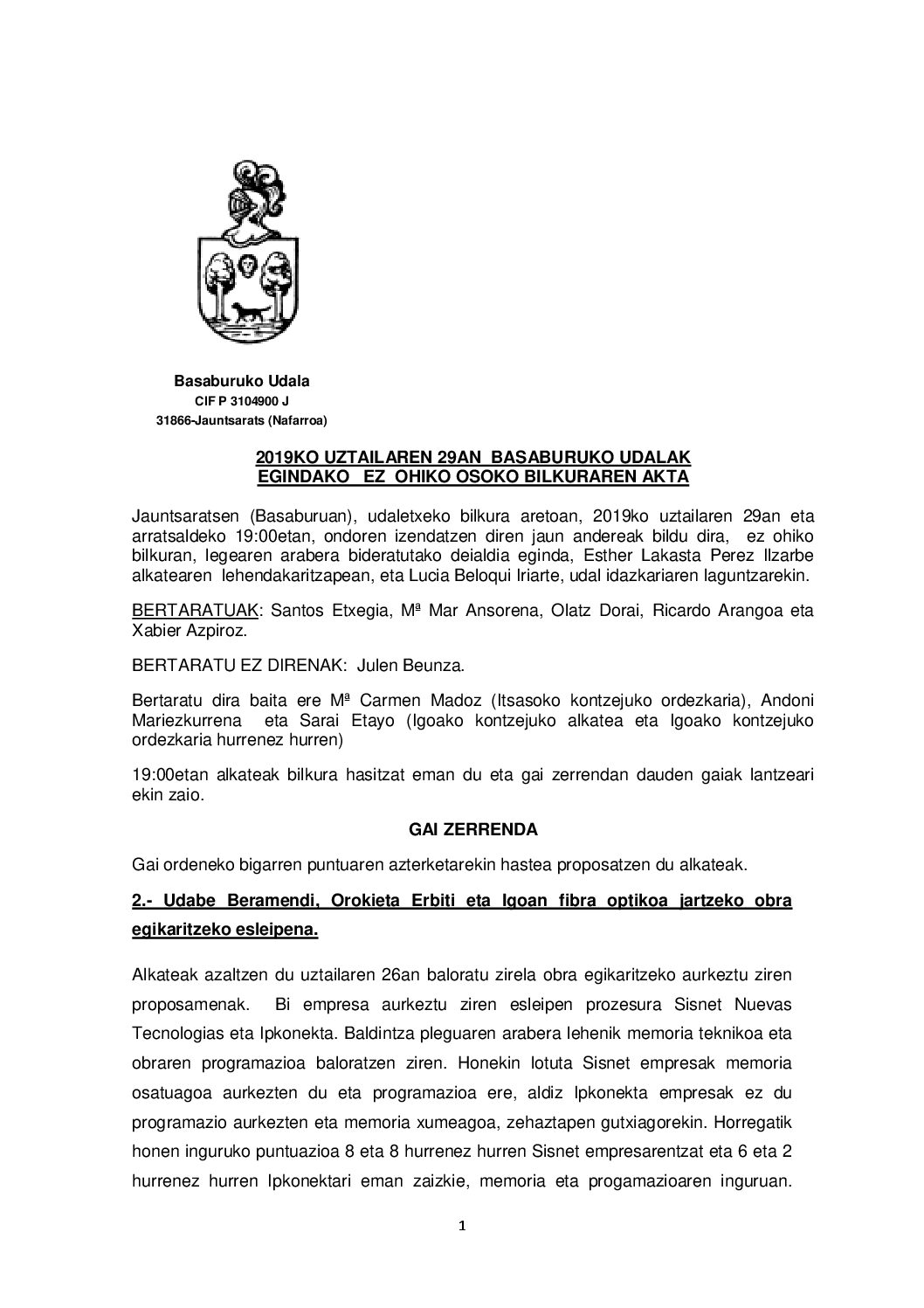 2019-07-29 Ez Ohiko Udal Batzarreko Akta