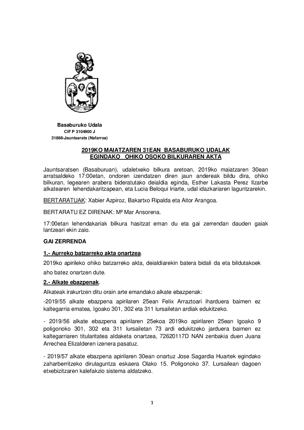 2019-05-31 Udal Batzarreko Akta