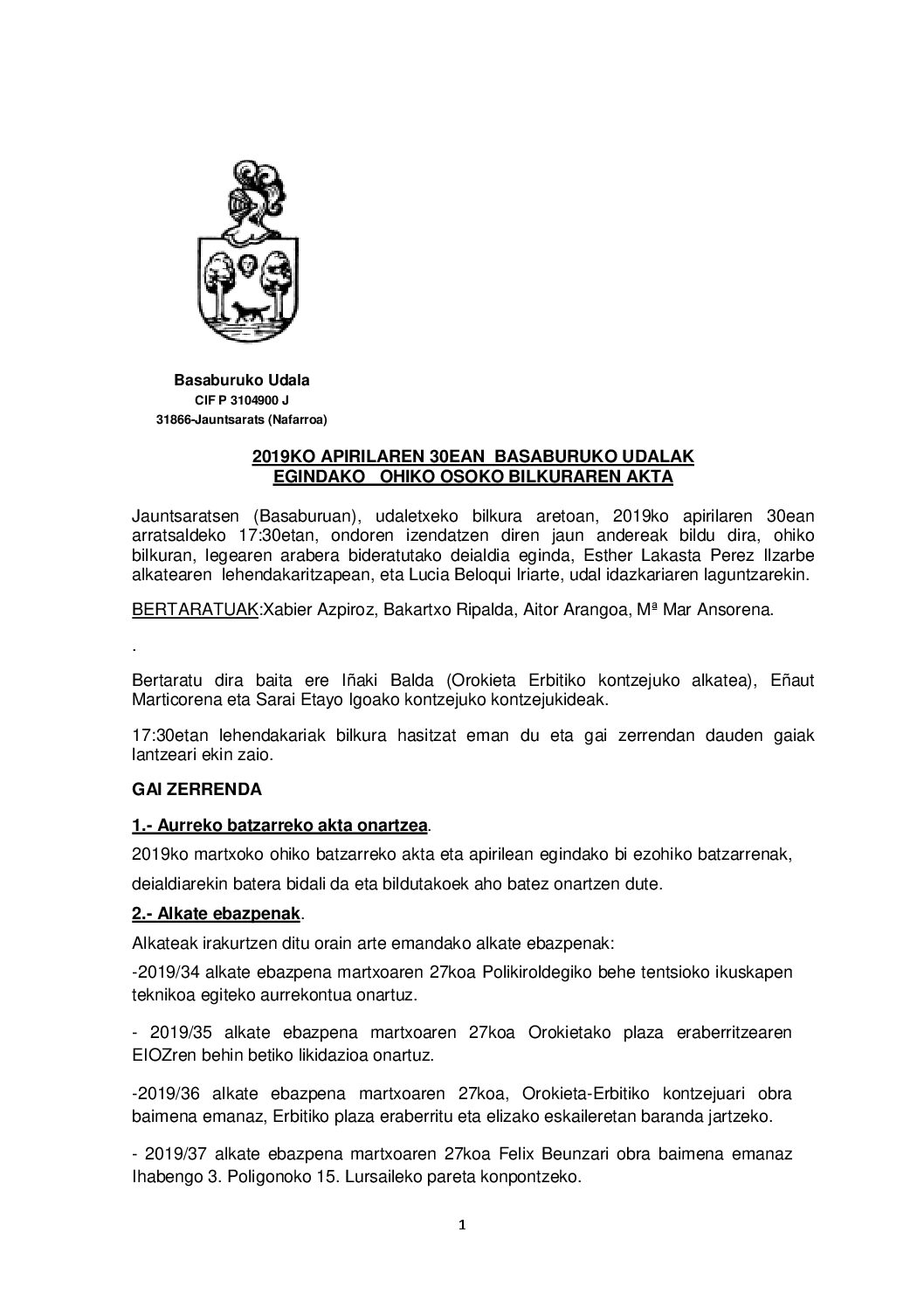 2019-04-30 Udal Batzarreko Akta