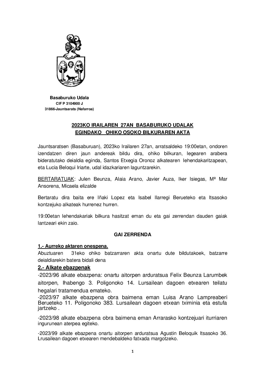 2023-09-27 Udal Batzarreko Akta