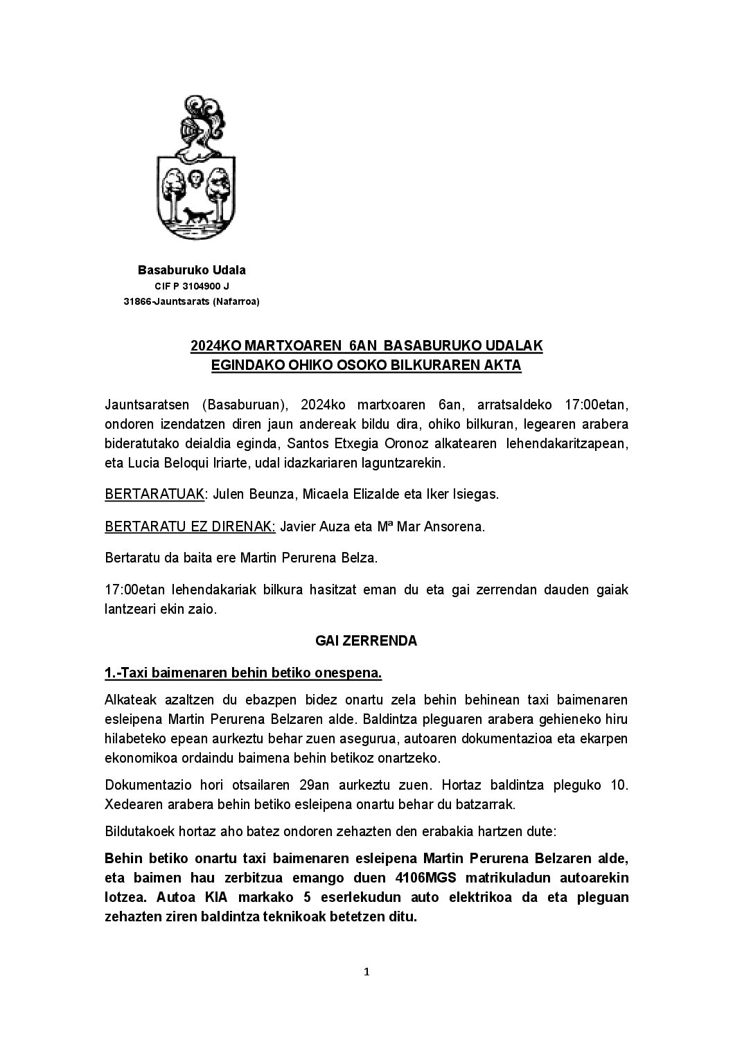 2024-03-6 Ez ohiko Udal Batzarreko Akta