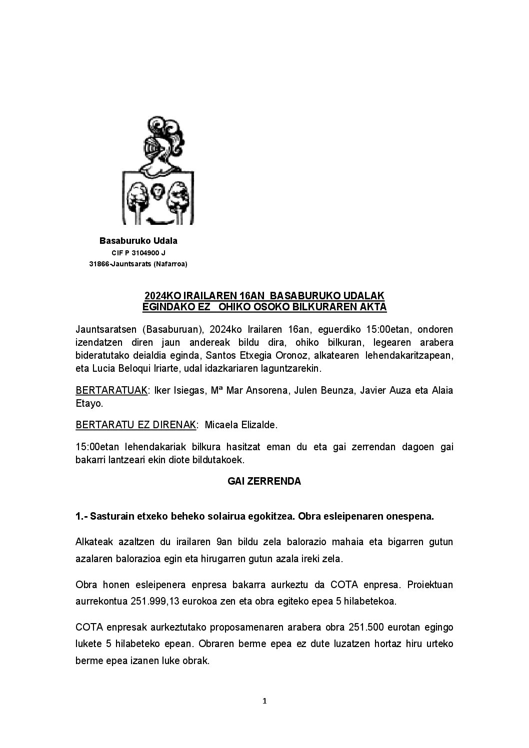 2024-09-16 Ez ohiko Udal Batzarreko Akta