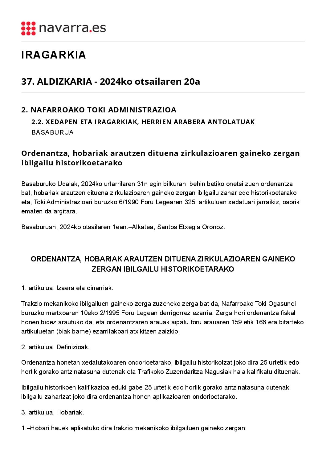 Ibilgailu historikoetarako zirkulazioaren gaineko zergan hobariak arautzen dituen ordenantza