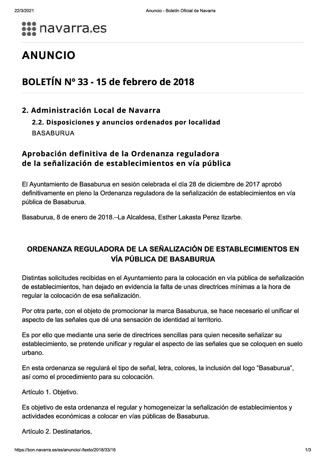 Bide publikoan establezimenduen seinaleak paratzea arautzen duen ordenantza