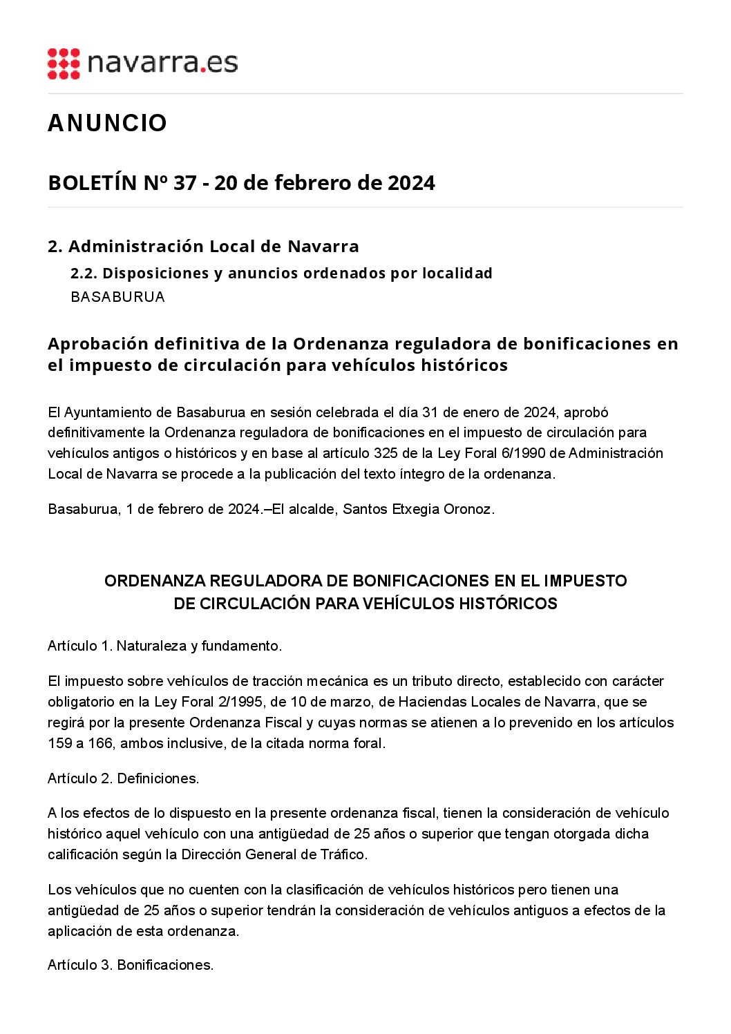 Ordenanza reguladora de bonificaciones en el impuesto de circulación para vehículos históricos
